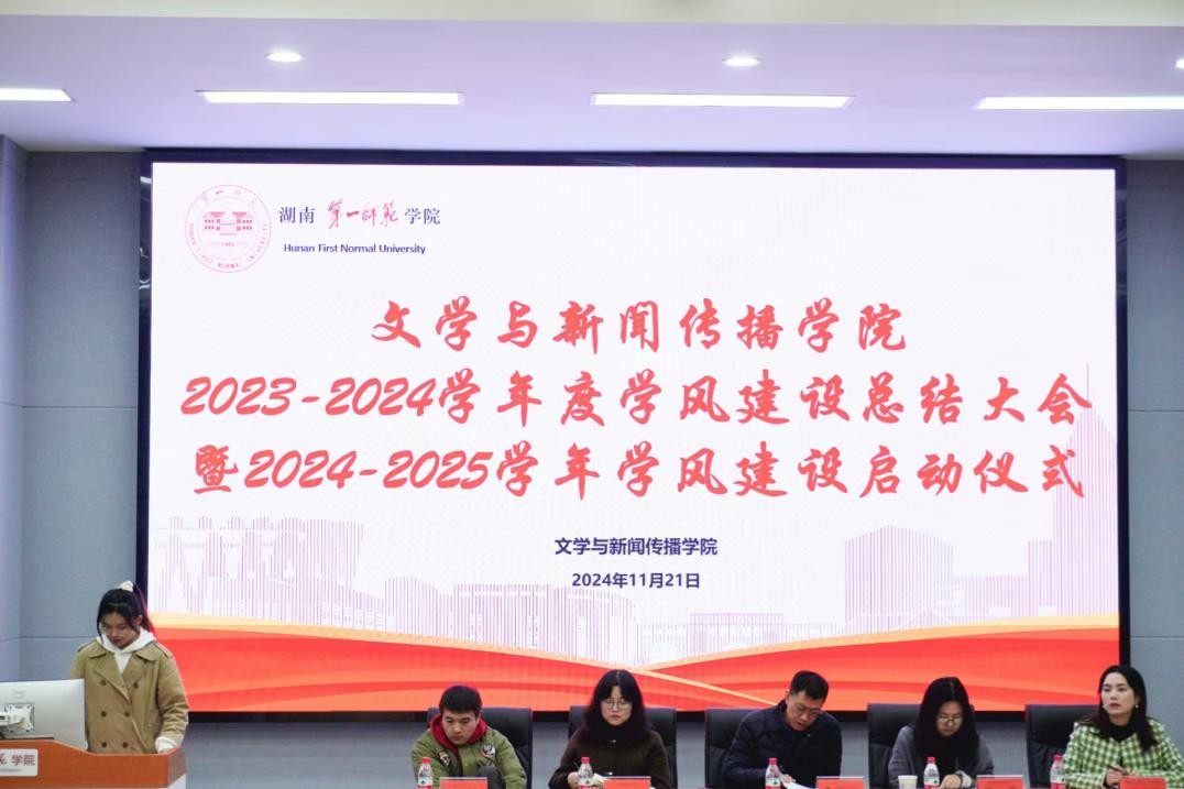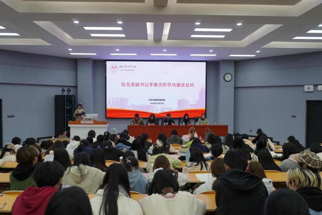 学风建设是学校全面深化本科教育教学改革,开启加快建设特色师范大学崭新篇章的重要保证。为积极对标学校人才培养新形势、新任务、新要求,全面提升人才培养质量,11月21日晚,AV中文字幕在线观看2023-2024学年度学风建设总结大会暨2024-2025学年学风建设启动仪式在润寰南105顺利召开。院党委副书记李豪杰、副院长张惠、学工办全体辅导员、2024级各班班主任出席会议,学院主席团、学习部、纪检部、秘书部学生干部,22、23、24级学生代表共计200余名同学参加会议。
