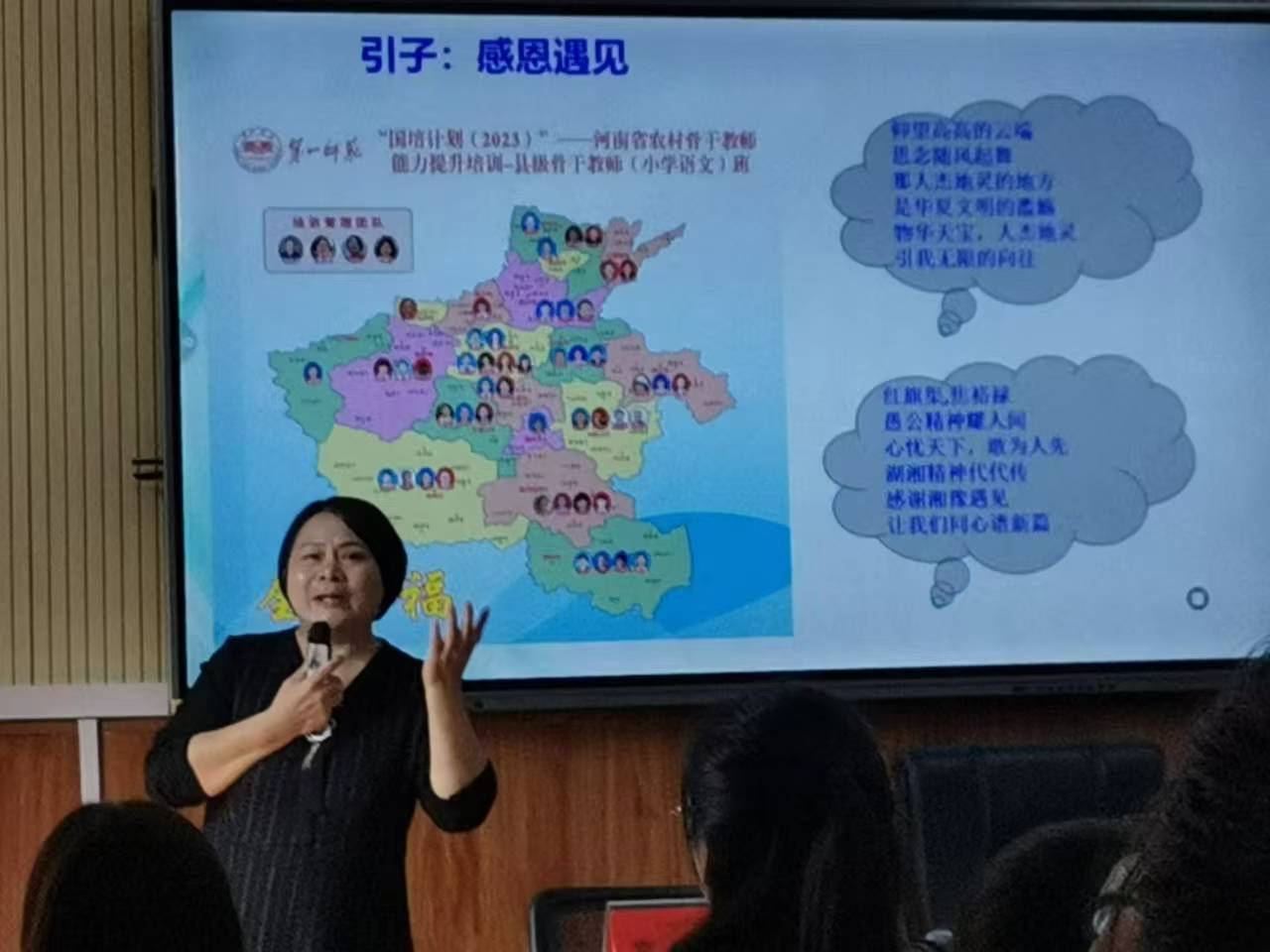 本次培训为期10天,授课教师皆为省内外国培授课经验丰富的专家教授,他们分别从不同角度解读了本次培训主题。河南省教育厅党组书记毛杰带了开班第一课,她以视频的形式给大家深情寄语,要求学员们深入学习贯彻习近平总书记关于教育家精神的阐述,同时从“情”“品”“专”三个方面分享自己的心得,勉励大家了解学科规律和学科前沿,不断提升自己的层次,防止出现本领恐慌和能力危机。