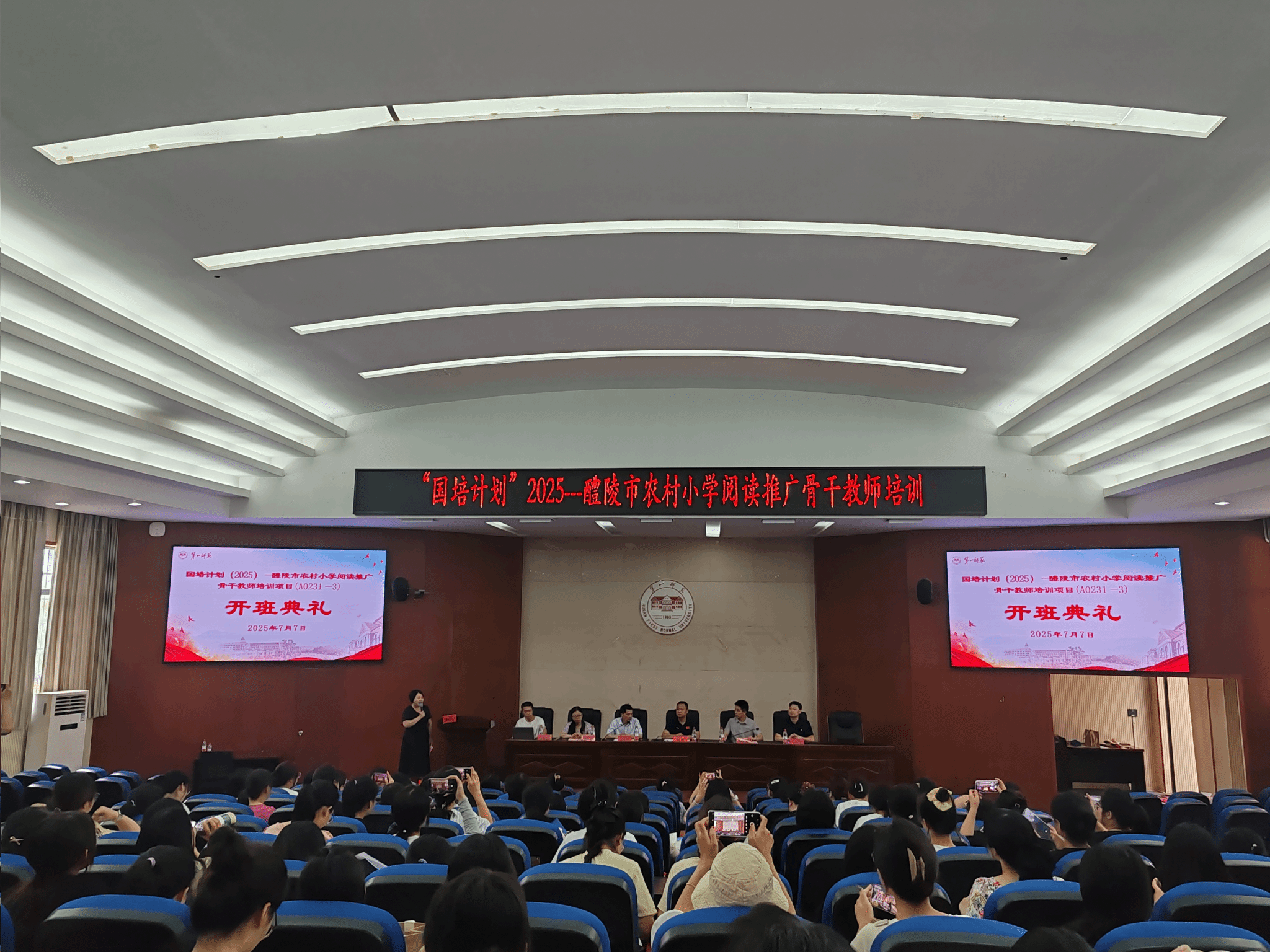 7月7日,“国培计划(2025)”——醴陵市农村小学阅读推广骨干教师培训项目在湖南第一师范学院盛大启航。本次培训旨在深入贯彻党的二十大和二十届二中、三中全会精神,全面落实全国教育大会精神,积极响应教育部办公厅、中央宣传部办公厅《关于深入实施全国青少年学生读书行动的通知》要求,着力打造一支醴陵市农村小学阅读推广骨干教师队伍,推动醴陵市农村小学形成爱阅读、会阅读和善阅读的良好氛围,助力“书香醴陵”浓厚阅读氛围的构建,进而推动醴陵市整个基础教育质量的提升。