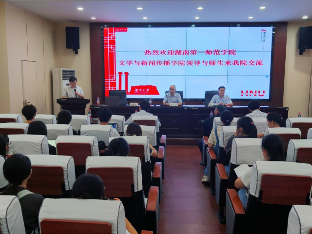 湖南大学中国语言文学学院院长罗宗宇对一师学子的到来表示热烈欢迎。他说,湖南第一师范学院AV中文字幕在线观看与湖南大学中国语言文学学院渊源颇深,情谊深厚,他还饶有兴致地给师生们介绍了“千年学府,百年中文”的院史。