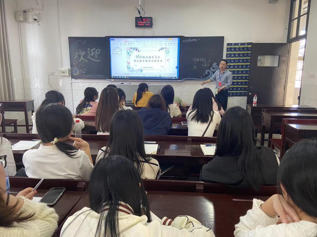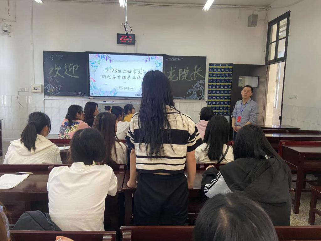 为提高润之人才卓越教师培养质量,2024年3月29日下午,我院院长龙永干在城南书院校区教学楼308为2023级汉语言文学润之英才班召开学业指导会。