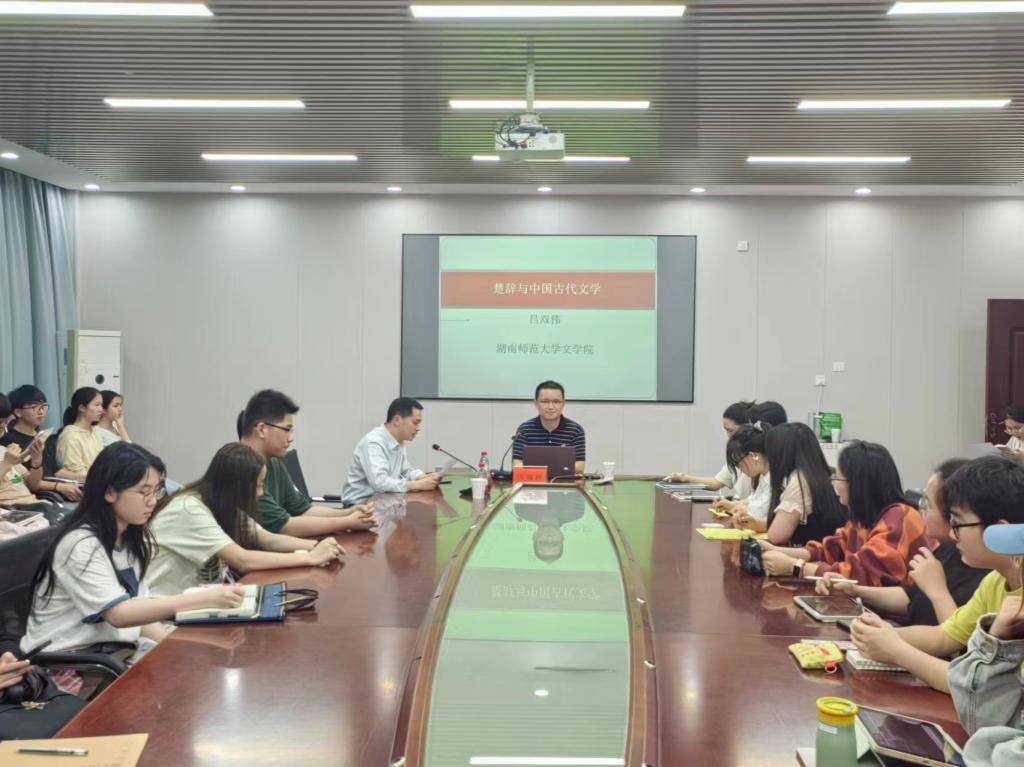 2024年4月2日,我院特邀湖南师范大学文学院教授吕双伟为润之英才班做题为“楚辞与中国古代文学”的学术讲座。会议由院长龙永干主持,22级润之英才班及汉语言文学专业部分学生参加讲座。