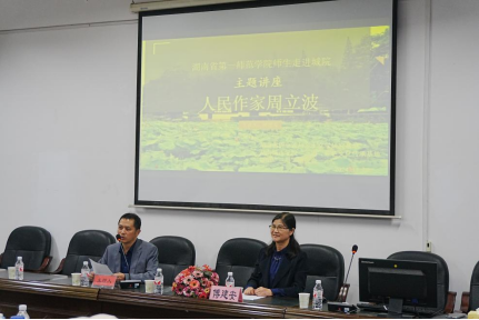 下午,同学们来到湖南城市学院“三周”红色文化传承基地。湖南城市学院人文学院院长傅建安教授对一师学子的到来表示热烈欢迎,并为大家带来了一场亲切风趣的文学盛宴。“文化振兴引领乡村振兴,新一代文学创作者要学习先辈,坚守人民立场,紧扣时代脉搏,谨记‘文艺为人民服务,为社会主义服务’的方针。”傅院长深入浅出地从写作背景、作品内容、语言风格等方面阐述周立波先生作品中深厚的乡土特色,并着重分享了周立波先生深下基层、贴近乡民、一同改造农村的事迹,探究他身为“钢铁战士”“人民作家”“党员干部”是如何坚守人民立场、践行为民初心,并把深厚的乡土情感融入到文学创作中。