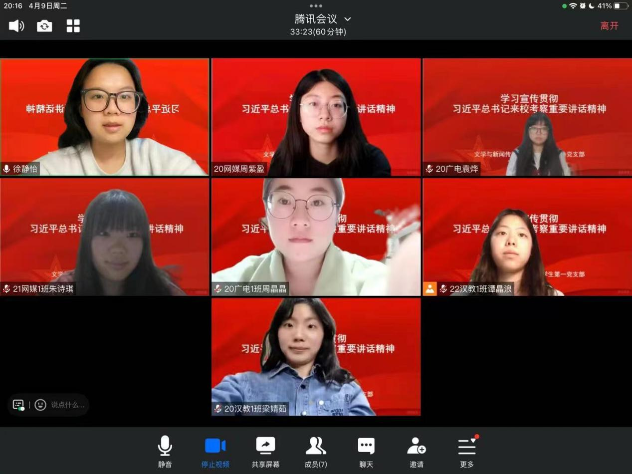 为响应学校党委发出的迅速掀起学习宣传习近平总书记考察我校重要讲话精神热潮的号召,按照学院党委部署要求,4月9日晚,我院学生第一党支部通过腾讯会议召开支部大会,集体学习习近平总书记考察我校重要讲话精神。会议由支部书记唐科主持,全体党员、预备党员参加会议。