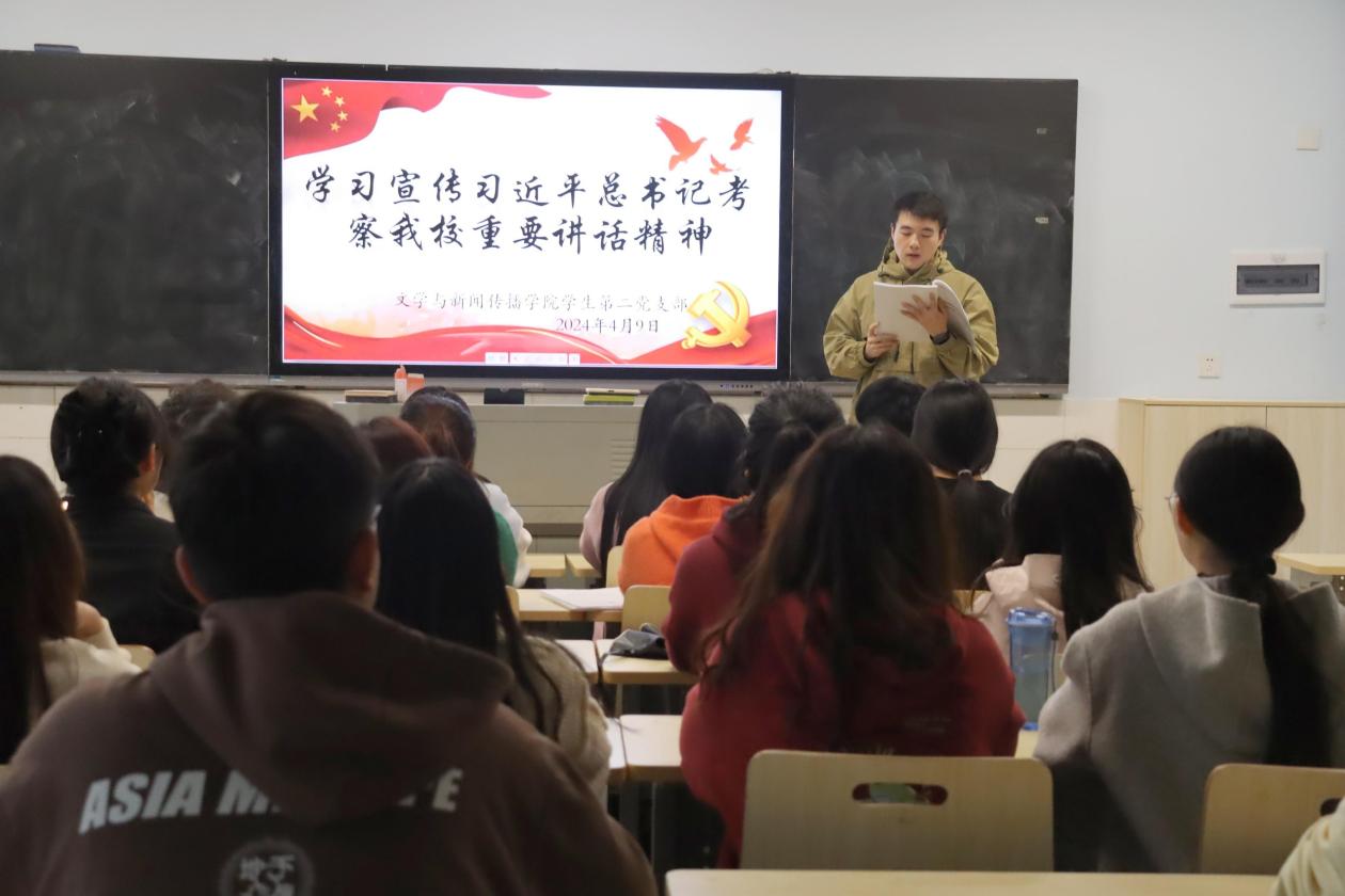 为响应学校党委发出的学习宣传贯彻习近平总书记来校考察重要讲话精神的号召,按照学院党委要求,4月9日下午,我院学生第二党支部在怀中楼北栋211教室开展“学习宣传贯彻习近平总书记来校考察重要讲话精神”专题会议,支部全体党员、预备党员参加了学习。会议由学生第二党支部书记安炜成主持。