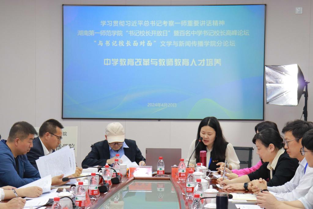 为深入学习贯彻习近平总书记考察我校重要讲话精神,全面开启2024年招生宣传,展示我校优势特色,加强与中学的沟通交流,共同推进升学、招生与人才培养工作,4月20日,学校举办了“书记校长开放日”暨百名中学书记校长高峰论坛,AV中文字幕在线观看设“与书记校长面对面:中学教育改革与教师教育人才培养”分论坛,旨在优化人才协同培养机制,擦亮一师教师教育品牌。来自怀化、株洲、益阳等地10所中学的11位书记、校长,学校科研处副处长罗燕,学科规划与研究生处副处长杨清华,学院党委书记何培森、副书记李豪杰、副院长杨水远、副院长周军、党委委员张惠、各系室主任以及“润之英才班”的30余名同学出席。论坛由杨水远和张惠主持。